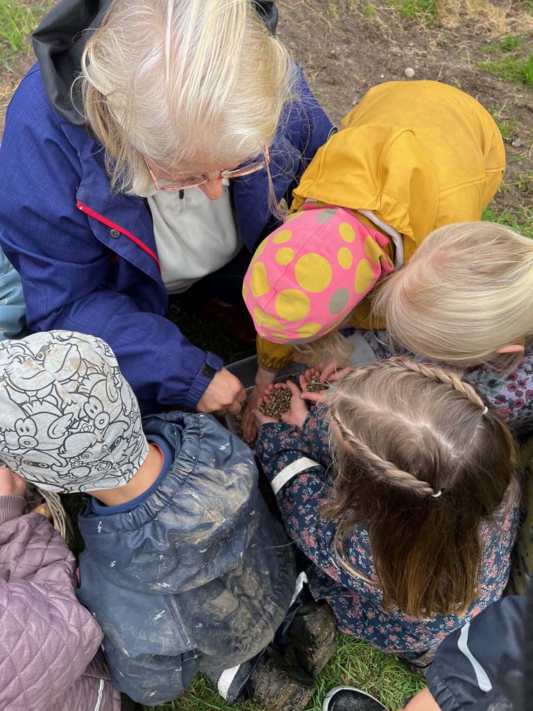 Junglestien er lige blevet renoveret med nyt grus, og i dag var børnene med ude at så insekt- og sommerfuglevenlige planter langs stien.